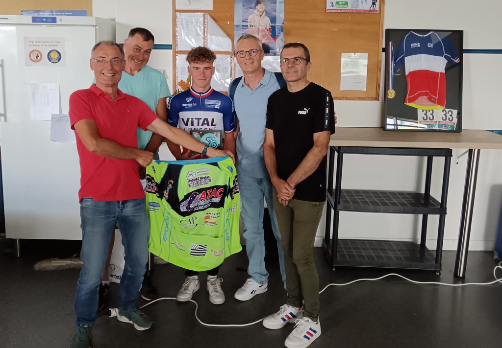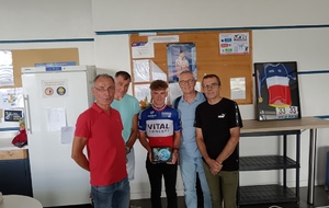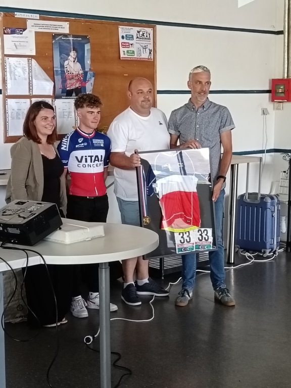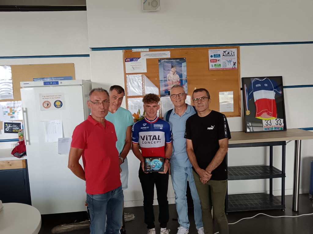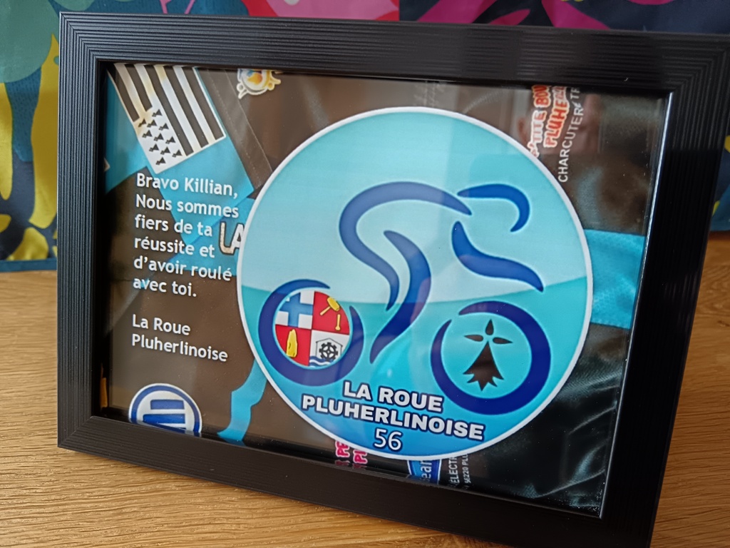 La Roue Pluherlinoise était invitée par l'Amicale Cycliste de Questembert pour féliciter Killian Verschuren de son nouveau titre de champion de France amateur. Merci à tous pour cette belle soirée riche en photos et en anecdotes. Nous avons remis à Killian un cadre photo de la RP Team 56 pour le féliciter de sa réussite et lui dire aussi à quel point nous sommes fiers d'avoir eu l'occasion de rouler avec lui. Nous lui avons bien évidemment souhaité une bonne continuation et tout le meilleur pour le tour de Burgos qu'il effectuera en qualité de stagiaire dans l'équipe professionnelle AG2R dès le 15 août prochain.